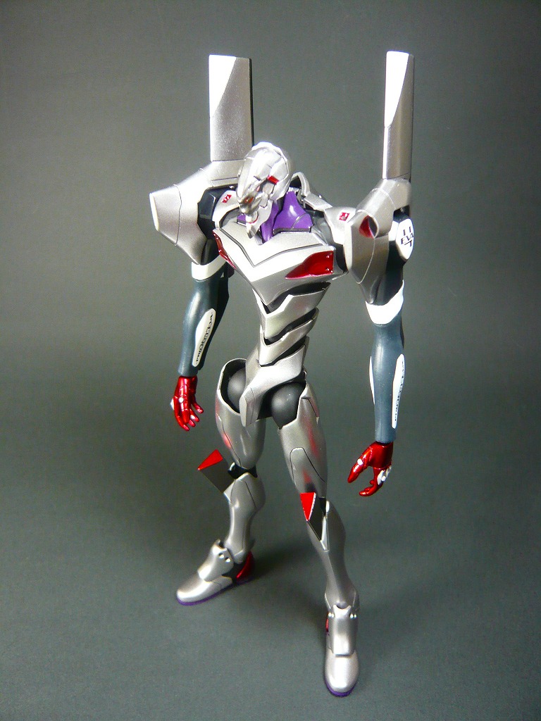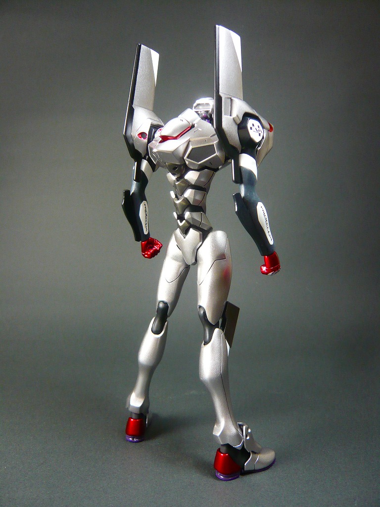 劇中では会話の中でしか登場しない4号機ですが、ゲームやパチンコでは渚カヲルの搭乗機という事もあり有名な機体ですね。 このキット、約15年前に設計されたものなので、挟み込み部分が多くそのためにマスキング作業が大変なのですが、それ以外は良く出来ているキットなのではないでしょうか。 キットとして販売されている4号機はメッキ仕様であるため、塗装を考えてあえてカラーリング以外は外見上の違いのない3号機からの制作としました。 武装として持たせているロンギヌスの槍は同シリーズの零号機からの拝借です。
