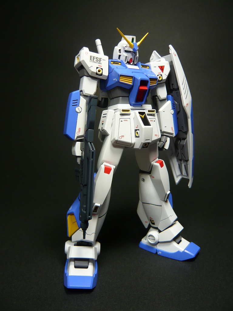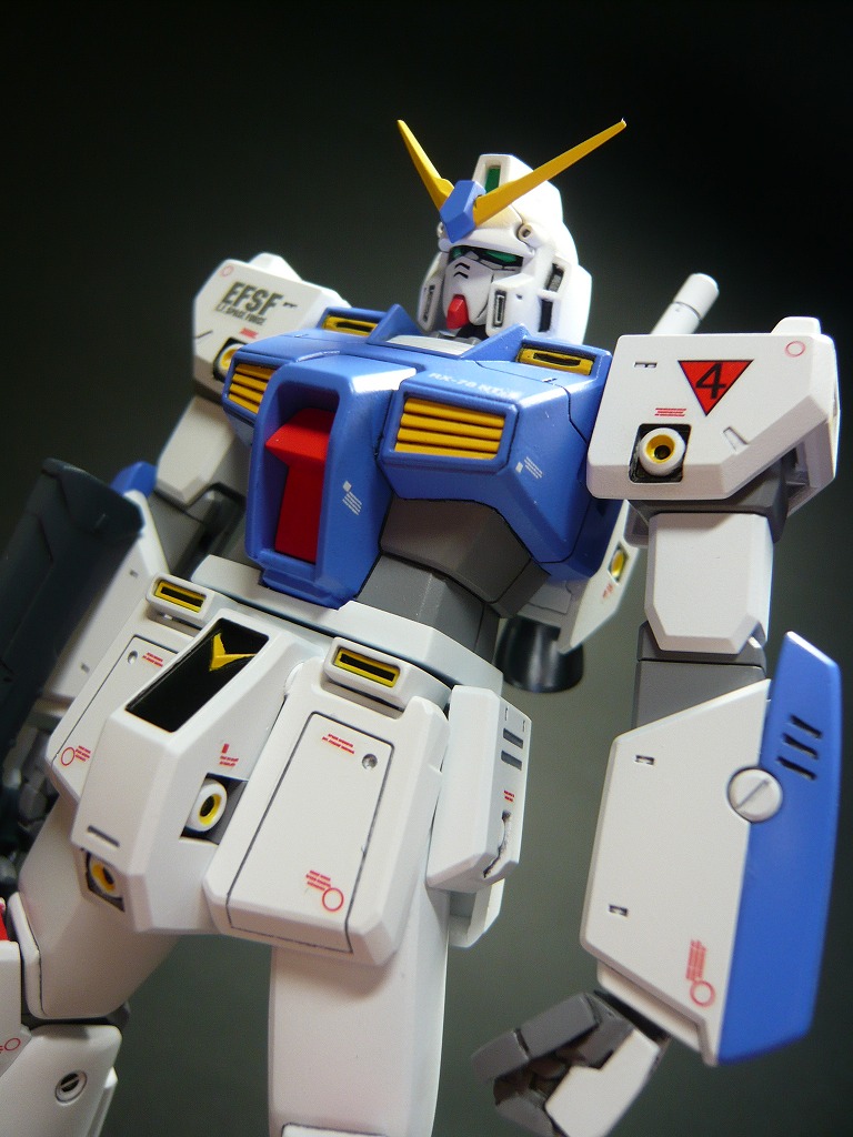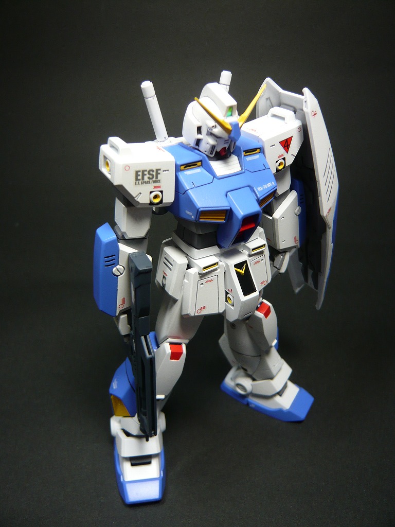 古いキットであるHGUCアレックスを最新キットであるHGUCジムカスタムを使い、最新キットと並べても遜色ないように仕上げました。 改修箇所 □頭部、アレックスを使用 厚みを増すために接着面に1mmプラ板を挟み込み、顔面は0.5mm奥に。 □胸部、ジムカスタムを使用 ウエスト部で1mm延長、ウエストカバー?を新造 □肩、アレックスを使用 □腕、ジムカスタムを使用 ガトリングガンの収納カバー部?はアレックスの物を巾詰めして使用 シールド固定用にネオジム磁石を埋め込み。 握り拳はHDMの複製品を使用。 □腰、アレックスを使用 サイドアーマーはプラ板にて1.5mm延長 □足 腿はアレックスの物を2mm延長して使用 スネ、フクラハギはアレックスを使用 アンクルアーマー、ソール部はジムカスタムを使用、接合部は関節を新造 □武器、アレックスを使用