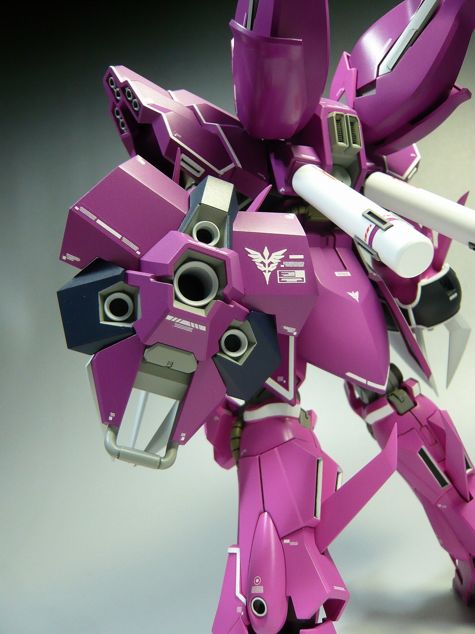 ◆カラーリングはジオノグラフィのザクF2型を参考に調色 ◆デカールはガンダムデカール[HGシナンジュ用]を主に使用。