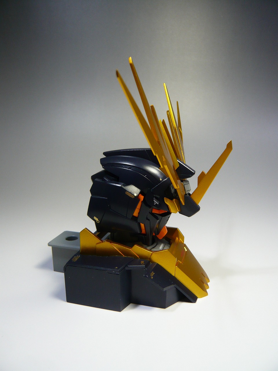ken16wの格納庫画像格納庫PAGE | 6 7 8 9 10 11 12 13 14 15 16 | ADMIN | WRITE 2013.04.15 Mon 10:40:07 SINANJU HEAD DISPLAYシナンジュ ヘッドディスプレイベースです。 以前製作したものとなります。 HGUCシナンジュのページに2カット程載せていましたが シリーズも増えてきましたので再撮影して再登場させてみました。 ■改修はモノアイをHアイズに変更 肉抜きの蛇腹をプラ板で塞いだ程度です。 ■胸、襟のエングレービングは ラッカー塗料の金(F/赤金)を塗装後、エナメルのセミグロスブラックを塗装 最後に溶剤を付けた綿棒にて拭き取り、半ツヤクリアコートで仕上げています。 ■デカールはMGシナンジュ用を使用しています。 製作より時間が経っていますので記事は曖昧な点が有りますがご了承ください。 画像はクリックで拡大できます。 最後まで御覧頂きありがとうございました。 PR 2013.04.13 Sat 13:35:08 BANSHEE HEAD DISPLAY BASE
