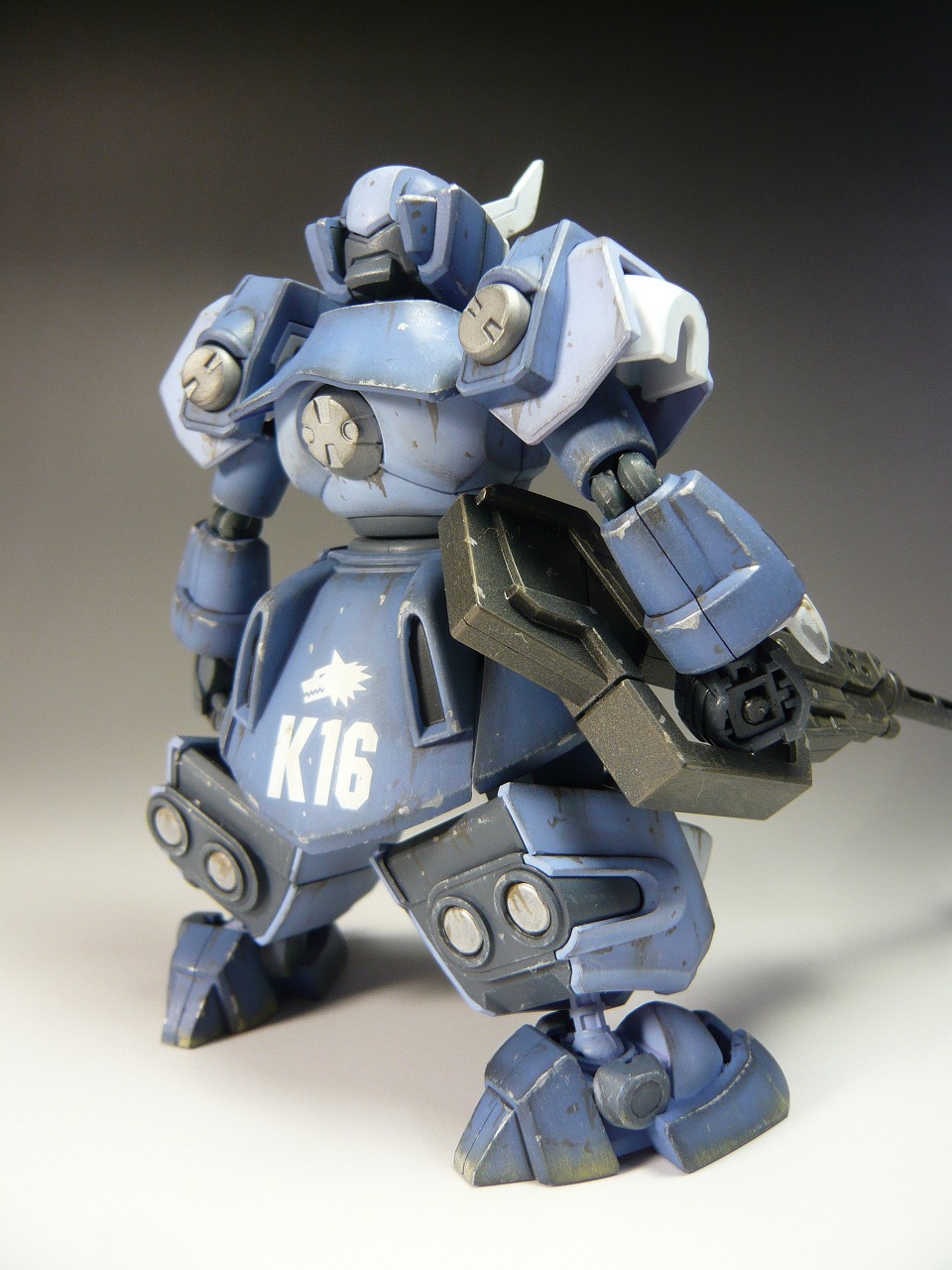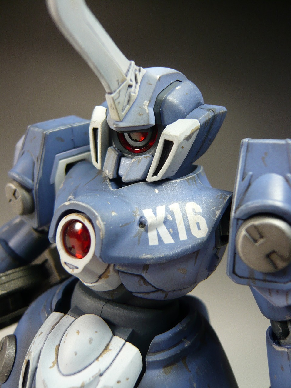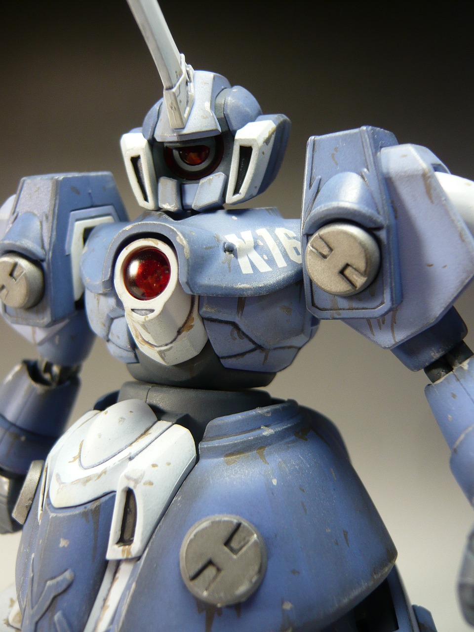 ダメージ表現はエナメルカラーのグレー、ブラウン、シルバーを使用 ワンポイントに部隊番号のK16のデカールを貼り付け(シャレね)