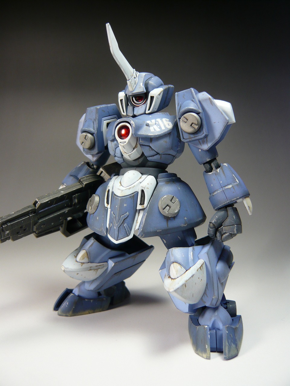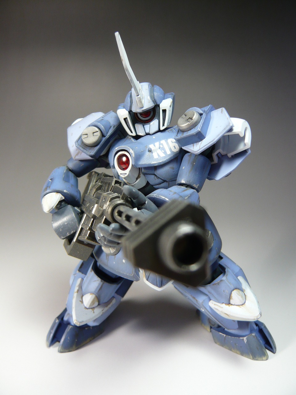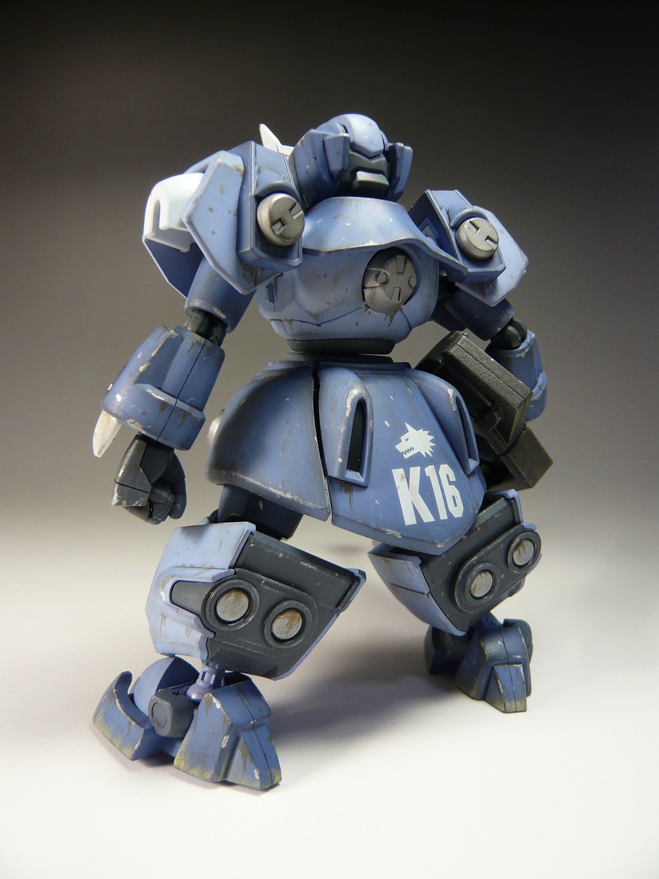 ダメージ表現はエナメルカラーのグレー、ブラウン、シルバーを使用 ワンポイントに部隊番号のK16のデカールを貼り付け(シャレね)