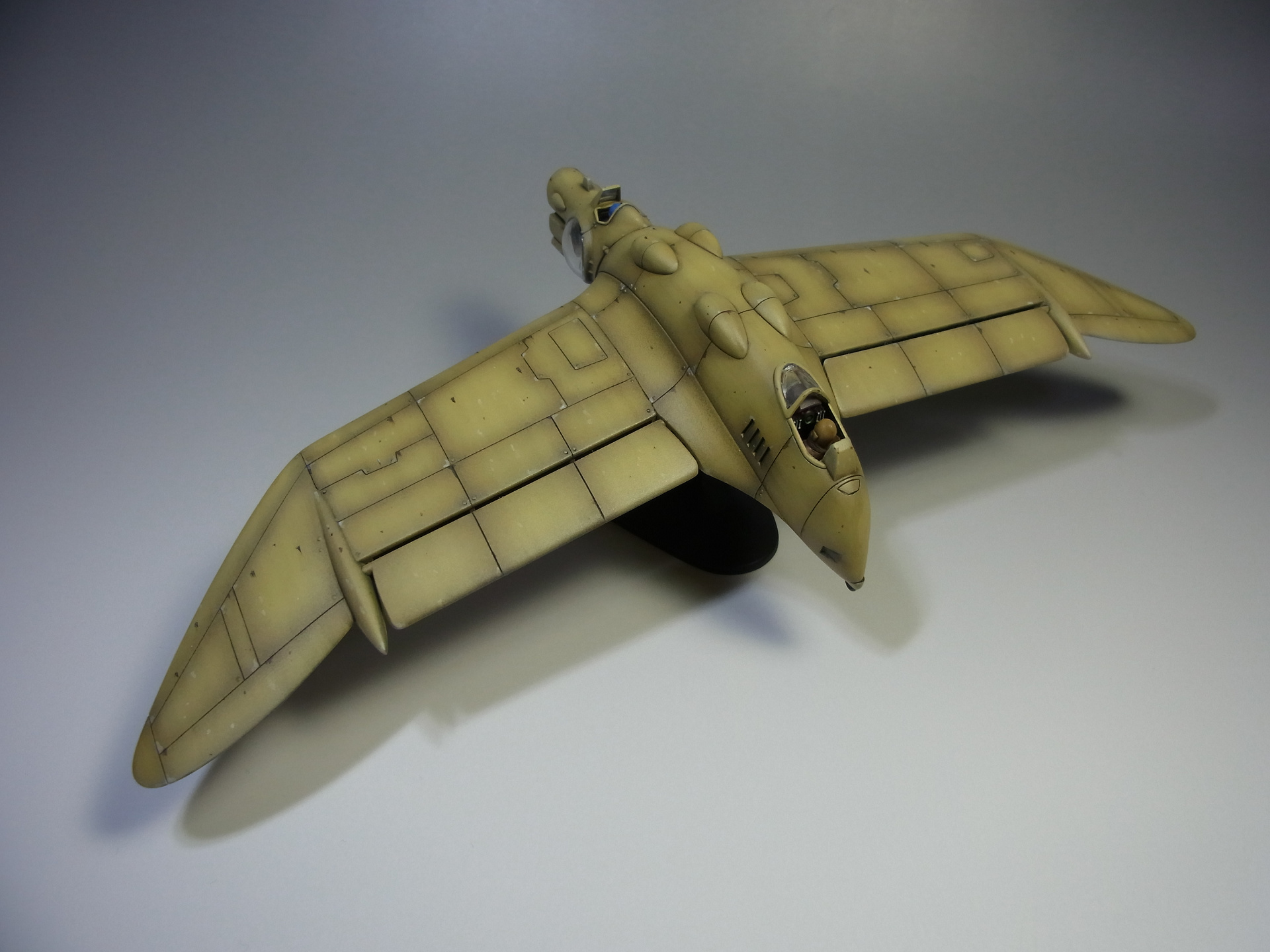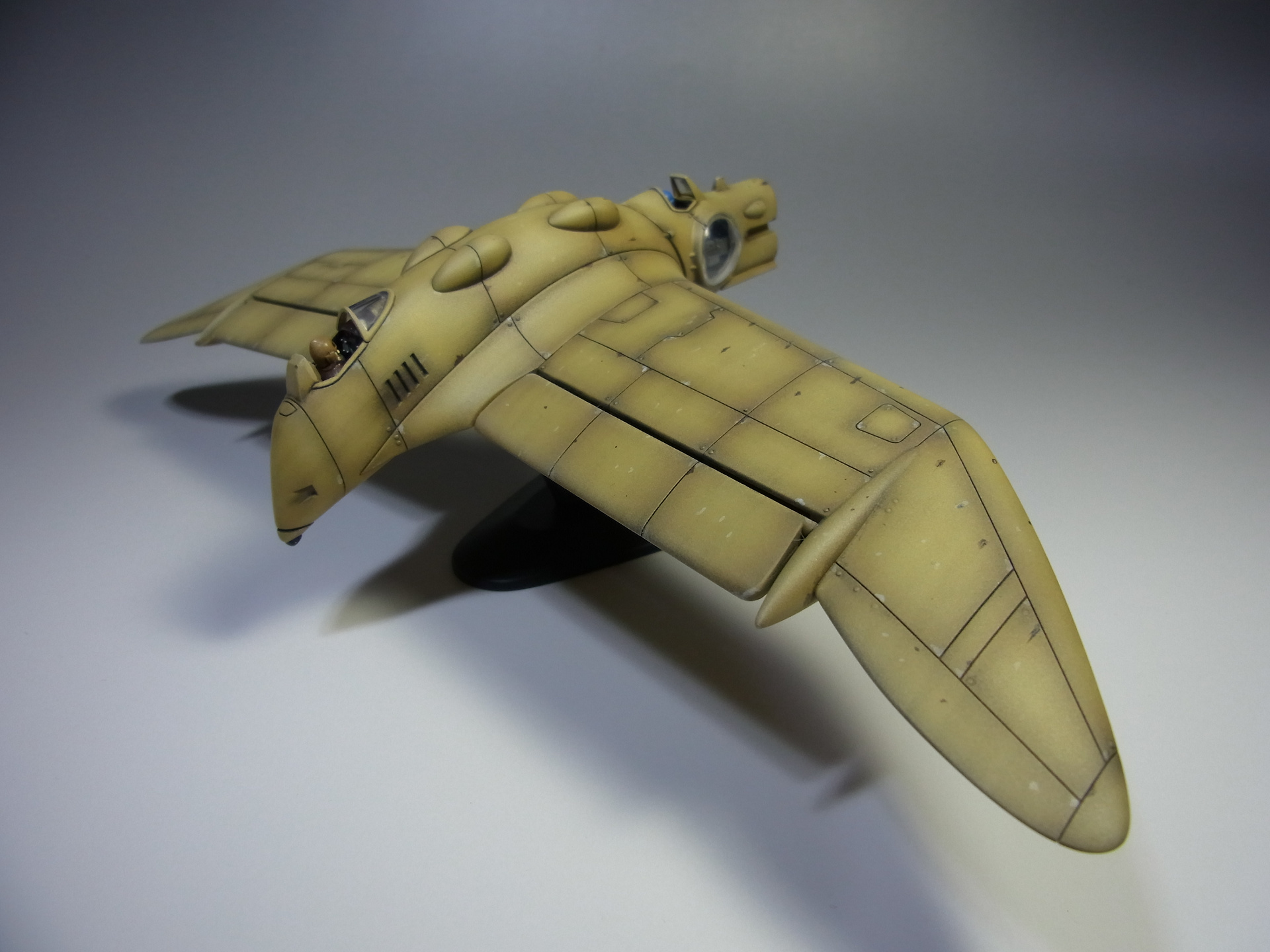 塗装は、黒サフ後、クレオスのマホガニー、サンドイエロー、ダークイエローと塗り重ね