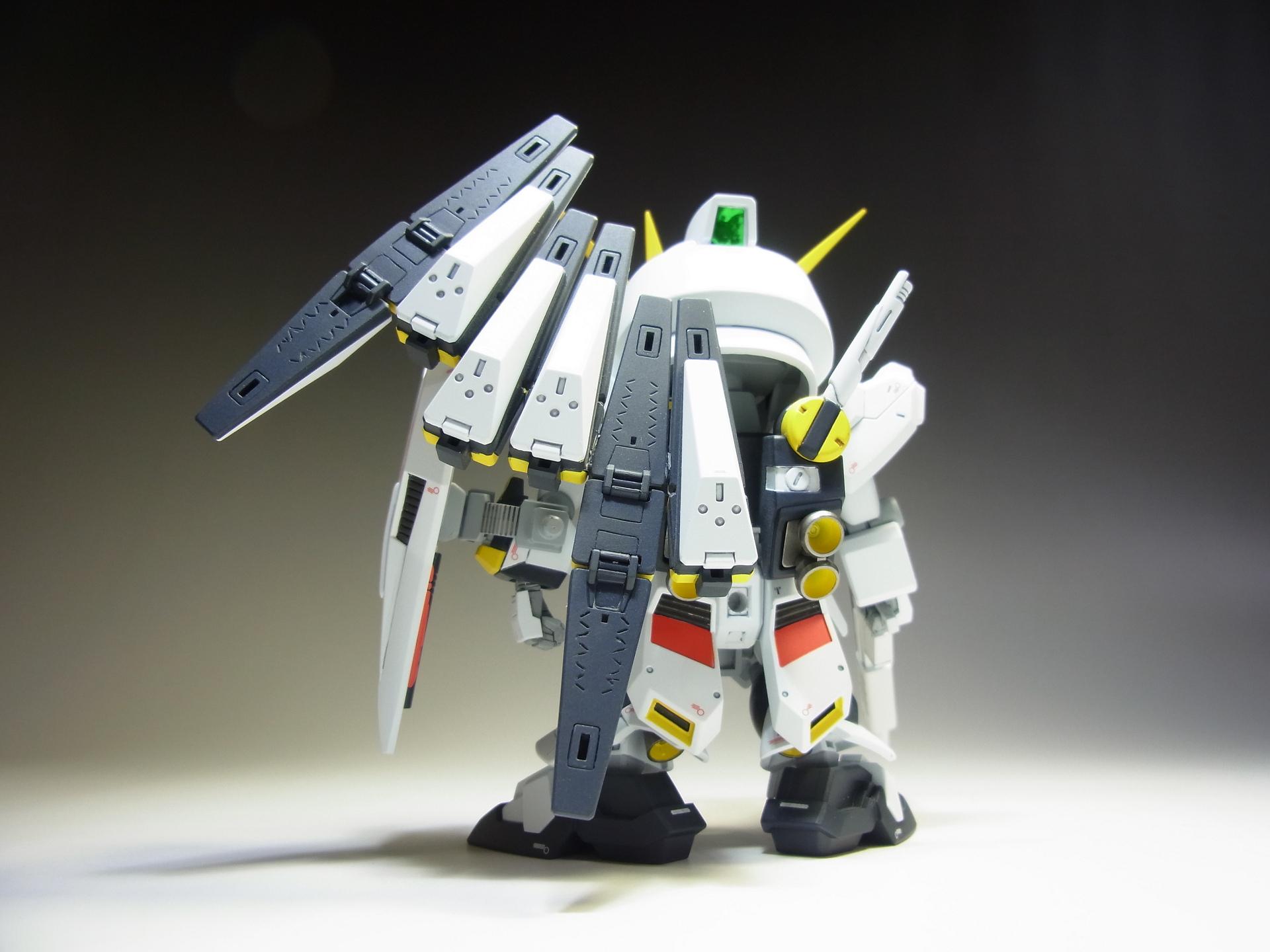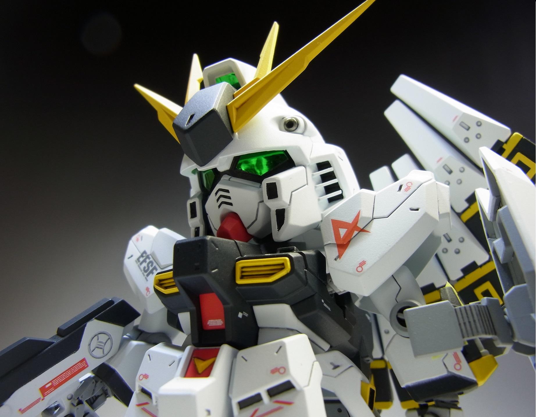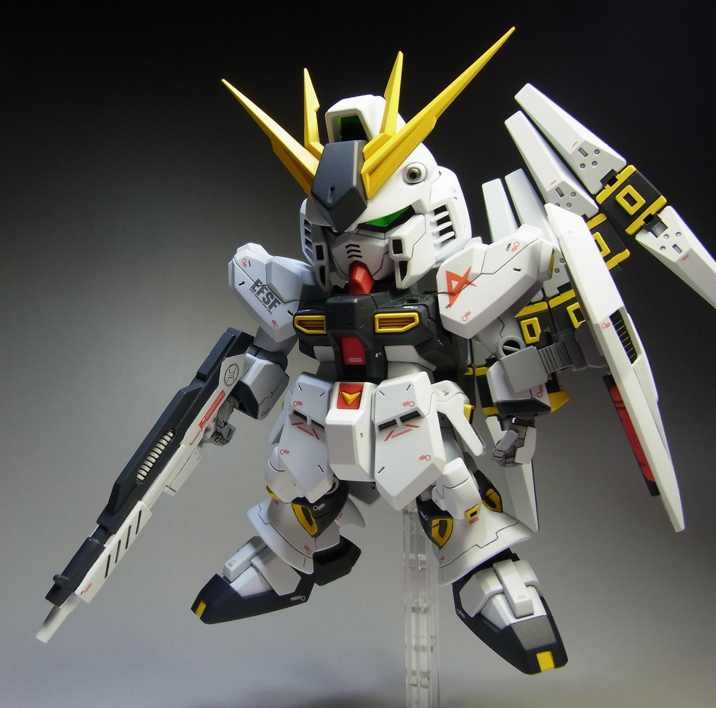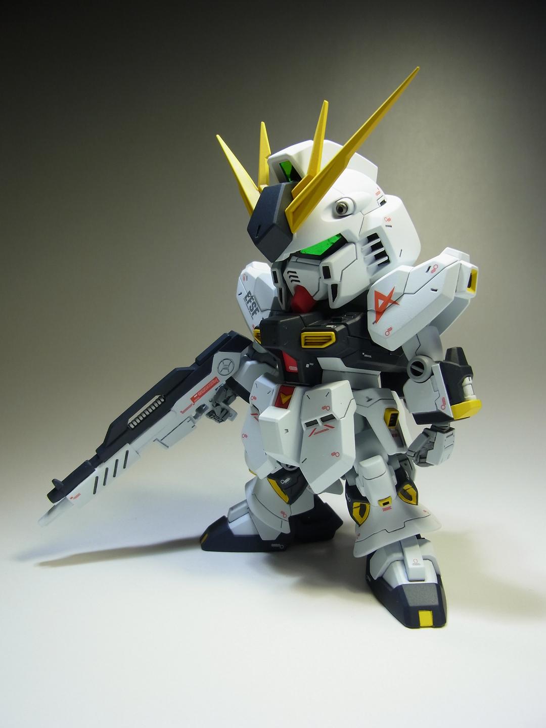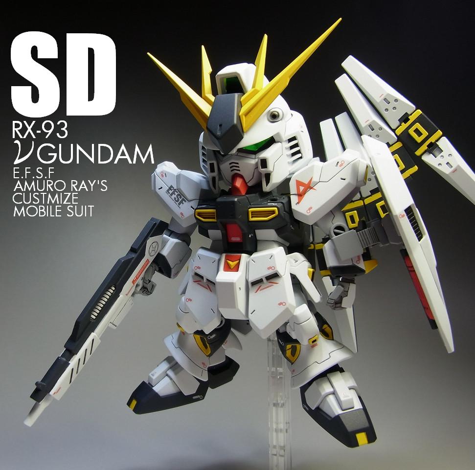 PR 2013.09.03 Tue 13:39:45 SD RX-93 νGUNDAMmusukeさん主催の「SD祭り」参戦用機体として 改修点 ◆胴体 ◆腕 ◆腰 ◆足 ◆バックパック ◆武装 ◆塗装 ◆デカール 表面処理などに手抜きの部分が見当たりますが言わなきゃ分からないでしょ~と シールドのAマークの下には赤い文字の配列を貼ってありますが、良く見ると「RX-0 UCガンダム」って書いてあります てな感じでツッコミ所満載ですが